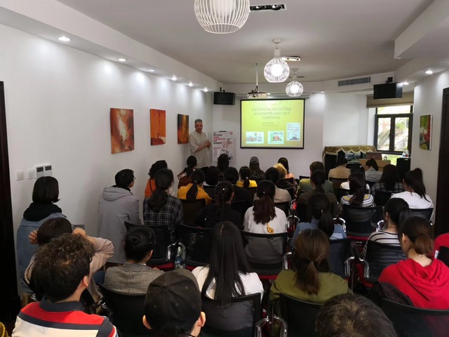 讲座中Marcus Hernig教授为大家讲解德国汉萨联盟的起源及发展历程,汉萨联盟所涵盖地区及其广泛的经济影响,并把德国汉萨联盟比喻成欧洲北方的丝绸之路,与中国的“一带一路”进行对比得出很多共通之处。在第二场讲座中详细介绍了中国瓷器,茶叶及印刷术等中国传统发明是如何传入欧洲并对其所产生的积极影响。Marcus Hernig教授用丰富的插图和幽默风趣的讲述方式为广大师生带来两场精彩的视听盛宴。