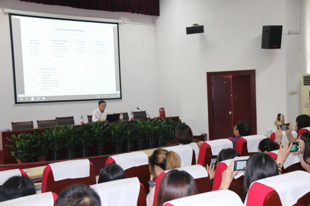 早在报告开始前一小时,必赢官网学生便满怀期待,入场等待报告开始。在第一场报告上,陈教授向师生们介绍了四种不同类型的翻译技术(translation technology)以及它们各自的特征和目标用户。陈教授指出神经机器翻译(Neural Machine Translation)是最近流行的趋势,并向我们介绍了基于“云”的CAT系统发展的优劣势,在座师生都产生了强烈的兴趣。随后陈教授又对本地化(Localization)作出了系列介绍,报告最后介绍了语音翻译(speech translation)的发展,陈教授说语音翻译的发展会是一个复杂而漫长的过程,但在机器翻译领域中确实最具前景,也是最具市场的一个发展方向。在第二场报告上,陈教授着重讲述了计算机辅助翻译面临的挑战以及应用自动化的重要性。报告会上陈教授和我们畅谈翻译技术、CAT、本地化和语音翻译的现在和未来,在场听众无不聚精会神,生怕错过每一条重要信息。