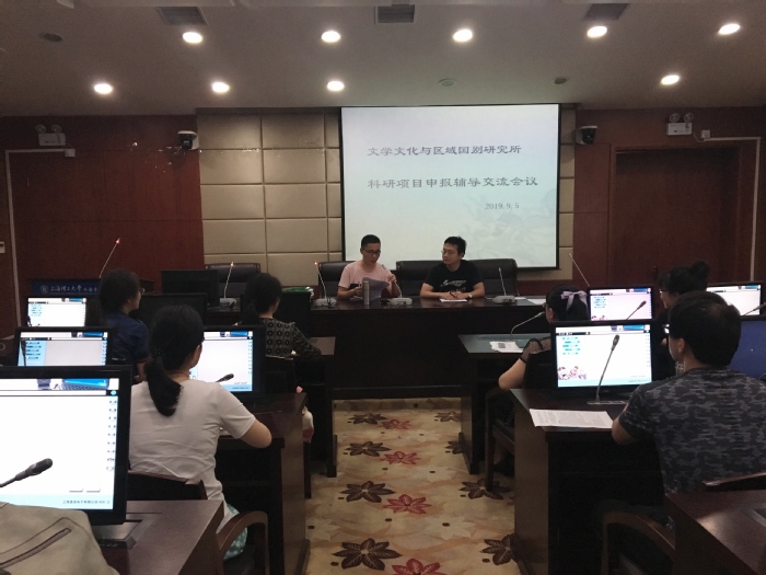 教育部人文社科项目和国家社科基金立项历来是评判学科建设的一个重要指标。为了在有限的时间之内提高项目申报书的撰写质量,201995日,文学文化与区域国别研究所在学院同声传译实验室举办了项目申报交流辅导会议。