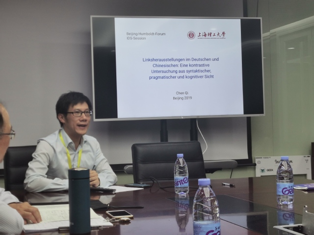 陈琦的报告主题是“德汉语左偏置结构的句法语用和认知研究(Linksherausstellungen im Deutschen und Chinesischen: Eine kontrastive Untersuchung aus syntaktischer, pragmatischer und kognitiver Sicht)”,王婀娜的报告主题为“基于语料库的中国新时代政治话语特色分析(Korpusbasierte Analyse der Merkmalen der chinesischen politischen Diskurse in NeuerZeit)”。必赢官网教师就两个主题以及日耳曼语言学、语料库语言学、语言与媒体等相关话题与参会学者展开热烈研讨,并向国内外专家介绍了必赢官网德语学科的发展及研究重点,报告和研讨赢得了广泛好评,取得了良好的效果。