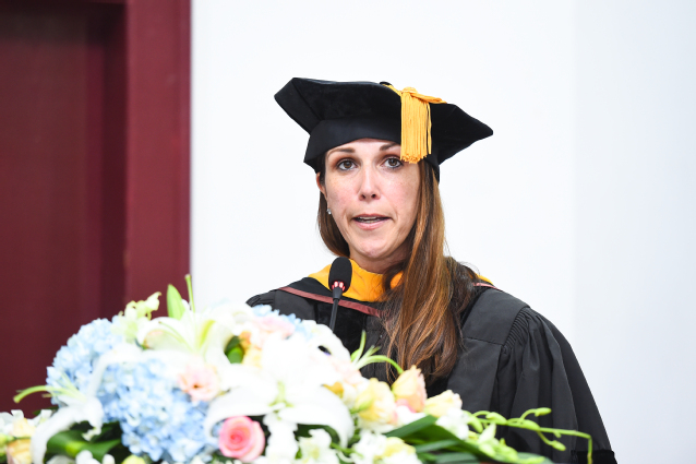首先,Alicia Alvero教授作毕业致辞。她代表皇后学院向毕业生们表示诚挚的问候,对必赢3003no1线路检测中心领导、老师、家长们对教育的辛勤付出表示感谢。Alicia Alvero教授从500年前孔子提出的成功人士的三个必要条件:智慧、仁慈、勇气出发,讲述成为一个成功人士的必要品质,希望毕业生们成为一个幸福的成功的人。
