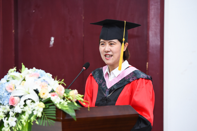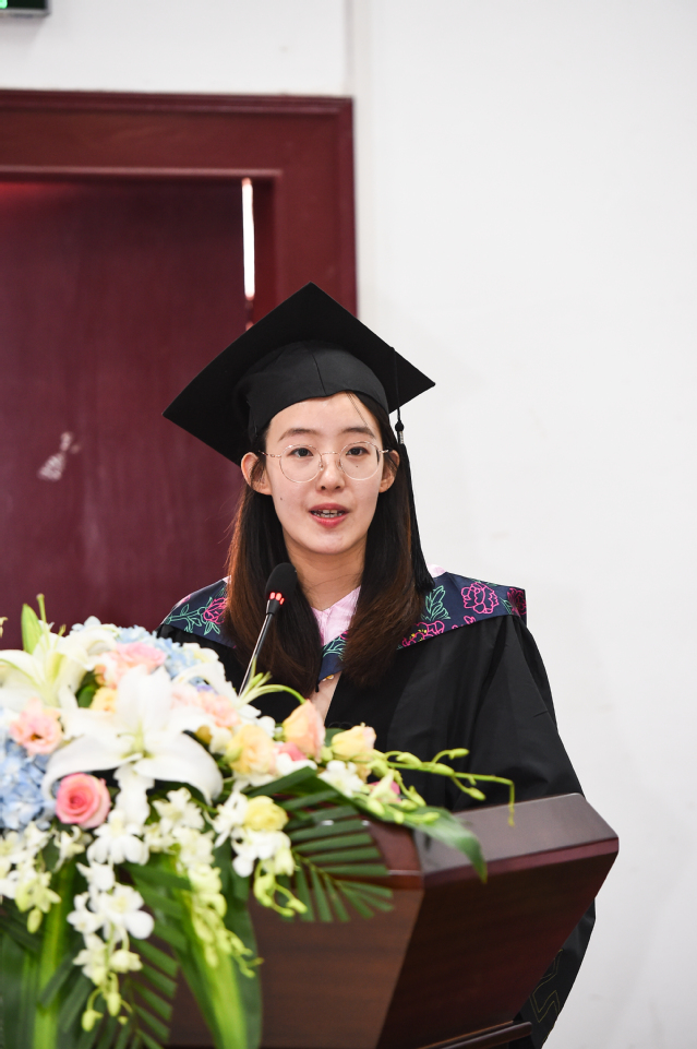毕业生代表郑芷鑫和首届2+2项目毕业生代表童玮琳发言,对母校表达了浓浓的情意。为了表达谢意,学生代表为领导、嘉宾、老师、家长送上鲜花,拥抱惜别。