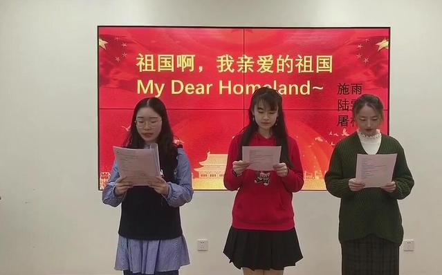 26日,院党课2017级本科生学员组在学院112党员活动室开展了爱国诗歌朗诵活动。同学们发挥自身专业特长,选择用英语朗诵现代女诗人舒婷的《祖国啊,我亲爱的祖国》,款款表达深切的爱国之情。这首诗创作于1979年,描述了中国过去的贫穷,和人民千百年来的梦想与苦难,亦展现了中国让人振奋的崛起和新生,深情地抒发了诗人自己对祖国的无比热爱、无限期盼和献身决心。