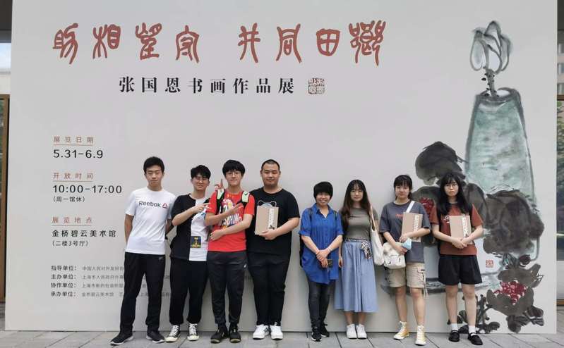 6月6日上午10点,为了使学生更加了解书画艺术在两国友好交流之中发挥的积极作用,并进一步加深学生对中日友好交流和培养国际视野的认识,在必赢3003no1线路检测中心学生处以及日语系的支持下,日语系教师郭丽带领7名日语专业学生来到金桥碧云美术馆,参观中日交流“乡田同井,守望相助——张国恩先生书画作品展”。
