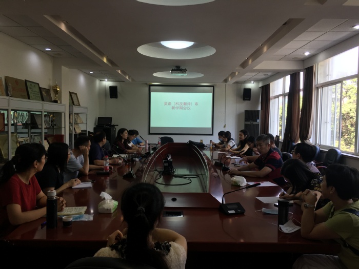 英语(科技翻译)系于9月4日上午10点在必赢3003no1线路检测中心306会议室召开了新学期会议,会议由系主任姜诚老师主持。姜老师首先介绍了新学期的工作安排,接着请必赢3003no1线路检测中心副院长韩戈玲老师做教学思政工作经验分享。韩老师的“英语词汇学”课程今年成功申报了必赢3003no1线路检测中心课程思政示范课程建设点项目。她介绍了在该课程中如何开展课程思政工作,例如让学生看时政材料了解词汇背景知识,结合词汇学背景知识介绍时政新闻,在答疑、辅导中给学生布置任务,让学生把一个个单词与国内外大事联系起来,培养学生积累词汇、用英语讲好中国故事等。副主任贾晓庆老师也结合自己获批课程思政示范课程建设点项目的“高级科技英语口译”课程谈了对于新学期推进课程思政工作的想法,认为课程思政包含多个维度,不仅包括挖掘教材中的思政元素,还包括教师的教学方法,教师本人的言行传递出的道路自信、理论自信、制度自信、文化自信。