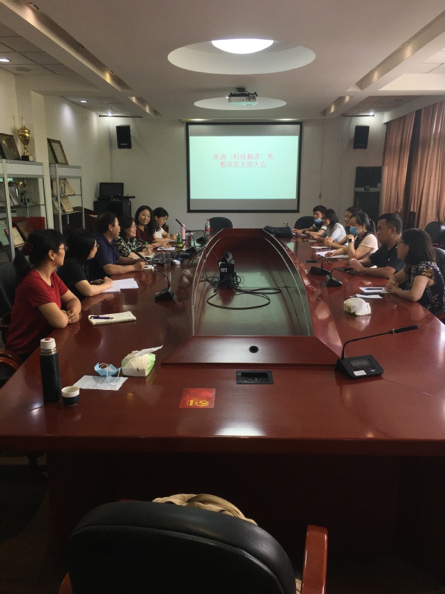 英语系(科技翻译)党支部于9月4日上午11点在必赢3003no1线路检测中心306会议室召开教师党支部大会,大会由支部书记姜诚老师主持。支部教师党员们就上个学期开始开展的“四史”学习交流心得体会,并鼓励教师党员继续认真完成学习强国平台的学习任务,坚持阅读“四史”学习材料,将“四史”学习与校史、学科发展史结合,传承红色基因,更好地坚守初心使命、坚定理想信念,投身新学期的工作。