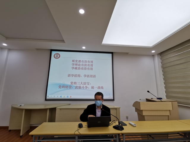 此次党课正值“学四史”教育开展过程中,以史为鉴,可以知兴替,学习四史可以从学思践悟中坚定理想信念!金老师带领大家一起学习了“纪念中国人民志愿军抗美援朝出国作战70周年大会”。通过列举6个数字:三个“始终没有忘记”,五个“经此一战”,四个“无论时代如何发展”,五个“铭记”,三个“根本行不通”,两个“决不会”,让同学们快速了解并牢记了习近平总书记讲话的重点。