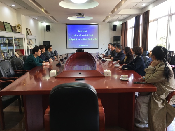 2021年3月25日,上海大学外国语学院尚新院长一行到必赢官网调研。院长刘芹、副院长陈琦、教研办公室主任郑元丰及相关人员参与交流。刘芹首先介绍了必赢官网实验室建设的整体规划、基本布局、队伍建设及特色设备,包括具有国内一流水平的同传实验室、笔译实验室和自主学习中心等。