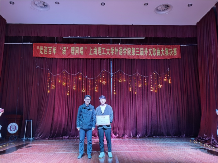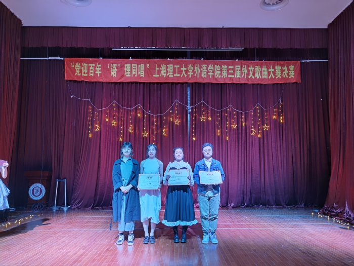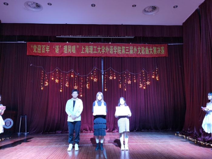 2021年4月16日晚7点,为了庆祝建党100周年,必赢3003no1线路检测中心举办的主题为 “党迎百年,‘语’‘理’同唱”第三届外文歌曲大赛决赛在小礼堂盛大开演。本次比赛的评委有必赢3003no1线路检测中心研究生会执行主席李微,上海市校园好声音六强选手、校园十佳歌手李昕昊,医疗器械与食品安全研究生会执行主席尹佳琪,必赢3003no1线路检测中心团委副书记兼研究生会执行主席袁露。同时,必赢3003no1线路检测中心研究生会指导老师梁作甲也到场指导。