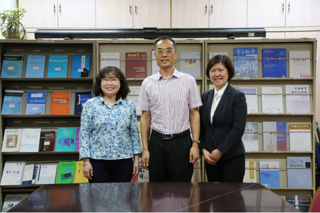在广东外语外贸大学,刘芹和韩戈玲与该校翻译学研究中心主任赵军峰教授详细探讨了外国语言文学人才培养和学科建设前沿话题,并参观了“虚拟仿真实验室”“跨国商务谈判模拟实验室”等国家级实验中心。
