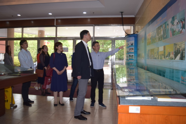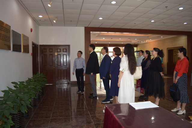 吴坚勇一行首先参观了美国研究中心展厅,听取了有关中心发展沿革、成果建设及国际交流等的介绍。
