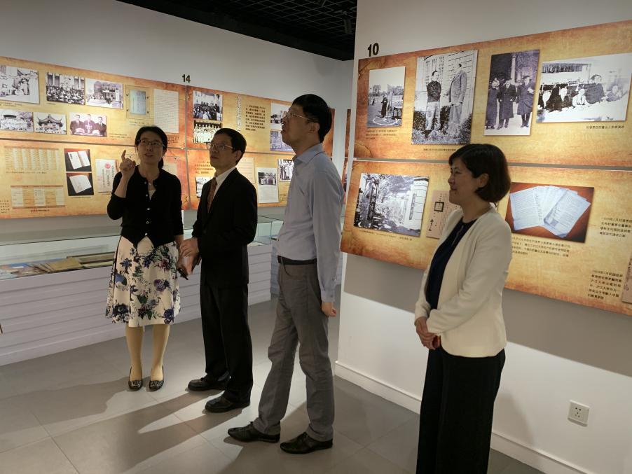 (必赢3003no1线路检测中心党委书记吴坚勇陪同刘鸿武教授参观校史馆)