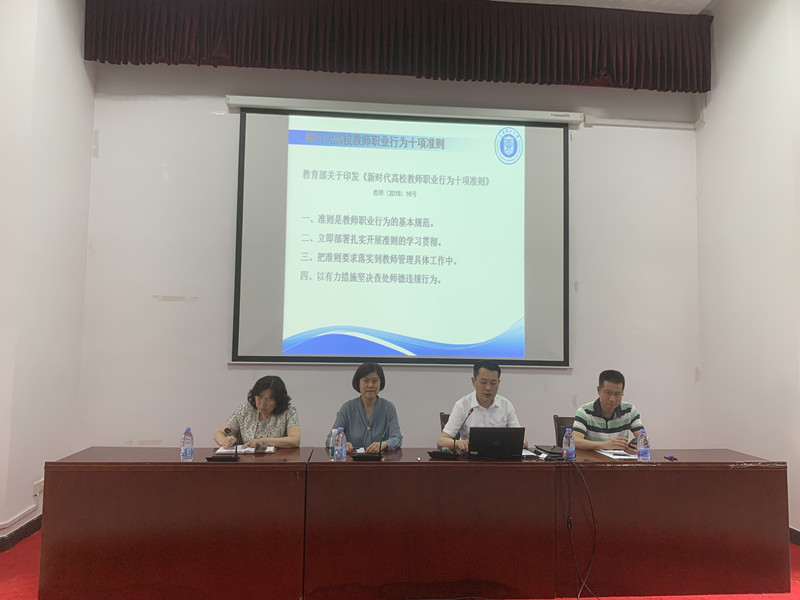会议首先就必赢3003no1线路检测中心副院长候选人的推选进行了推荐。之后,曲德强书记对全体教职员工进行了师德师风专题教育。曲德强详细解读了《新时代高校教师职业行为十项准则》及《研究生导师指导行为准则》,要求每位教师把《准则》切实落实到实际工作中去。对高校教师师德失范行为,曲德强结合多个典型案例,明确了问责机制、处理程序等有关内容。