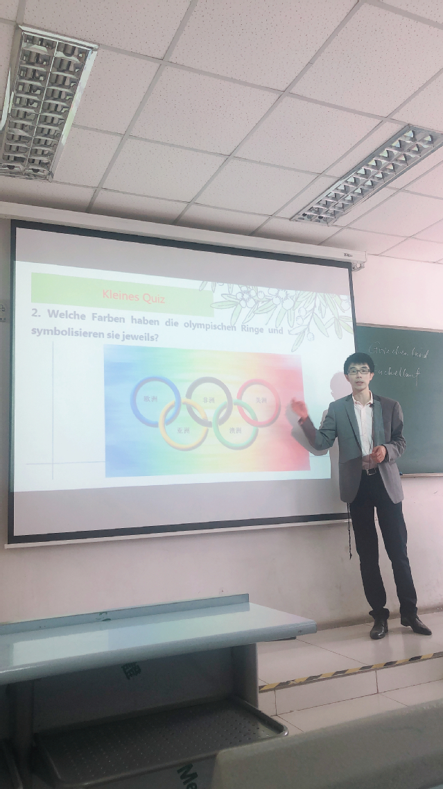 德语系周磊老师在公开课堂上讲授了主题为“Schneller, höher, stärker”(更高、更快、更强)的一课。首先,周老师通过有趣的智力竞猜环节,向同学们展现了奥运会的历史渊源、圣火和五环的象征意义以及奥林匹克精神与中华民族精神的完美统一。当讲到北京多次申奥时,学生中激发出了热烈的讨论。有同学说,从93年申奥惜败于悉尼到08年奥运会在家门口的盛大举行,彰显了我们国家民族在中国共产党的领导下于各方面取得了长足的进步。随着综合国力的日益提升,中国人民终于圆了百年奥运梦。还有同学表示,08年奥运会召开前,我们国家遭遇了汶川大地震,但是巨大的自然灾害没能打倒中国人民,在党的领导下我们克服了重重困难,向全世界呈现了一届完美的奥运会,民族自信心也增强了。最后还有同学补充道,奥运会与中国的渊源同样是一部中国共产党带领人民为实现社会主义现代化和民族复兴的伟大历史。历史已经证明,只有党才能救中国。讨论的最后,周磊老师总结到,过去一百年我们在党的领导下取得了各方面的伟大胜利,而今年正值建党一百周年,历史的车轮驶入了新的百年。在座的各位青年学生正是国家未来的栋梁,肩上也担负了新的历史使命。