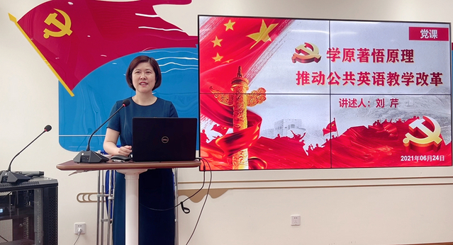 为庆祝中国共产党百年诞辰,进一步推动“四史”学习教育走深走实,6月24日上午8:30,公共英语教研中心教师党支部在必赢3003no1线路检测中心党员活动室举办了题为“学原著,悟原理,推动公共英语教学改革”专题党课。党课由学院党委副书记刘芹院长和支部书记陈征老师主讲。