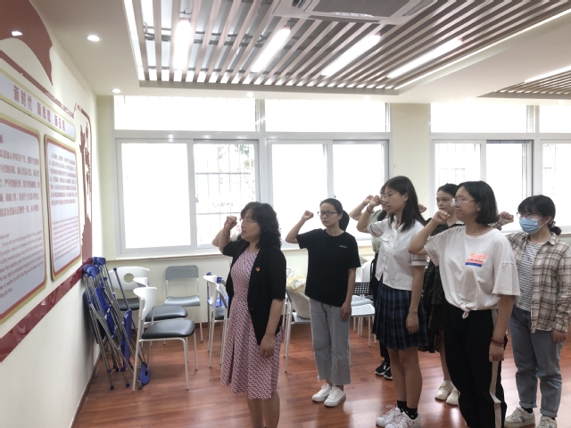 党课结束后,韩老师参加并指导了德语系本科生党支部的党员转正大会,为即将成为正式党员的同学们提出了殷切希望。在浓厚而热烈的氛围中,全体党员共同过政治生日,喜迎共产党百年华诞。韩老师为德语支部全体党员颁发政治贺卡,并带领党员们重温入党誓词。最后,她代表学院向支部赠送两本书籍——《中国共产党简史》、《论中国共产党历史》,希望同学们能够学党史、知党情、跟党走,时刻提醒自己党员身份,注重党性修养,增强党员意识,牢记入党誓词,永葆党员先进本色!