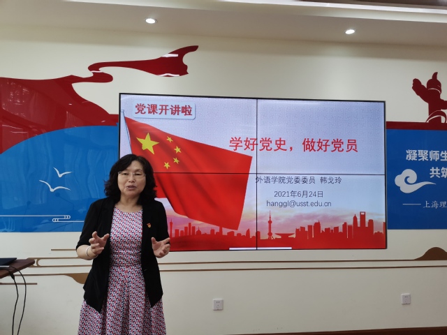 624日,必赢3003no1线路检测中心党委委员韩戈玲老师在学院党员活动室为英语系(科技翻译)本科生党支部和德语系本科生党支部开展了一堂主题为 “学好党史,做好党员”的生动党课。