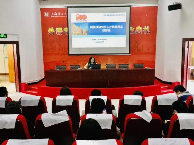 刘芹院长做讲话,针对外国语言文学研究生如何破“五唯”,提出了两点具体方案:第一,导师带领学生进行决策咨询研究,将决策咨询报告等同于相应等级的论文;第二,鼓励学生参加学术会议,尤其鼓励学生能够在国际学术会议中发出中国声音、传播中国话语,为构建新时代中国对外话语体系提供人才支持,以此作为评奖评优的衡量标准。