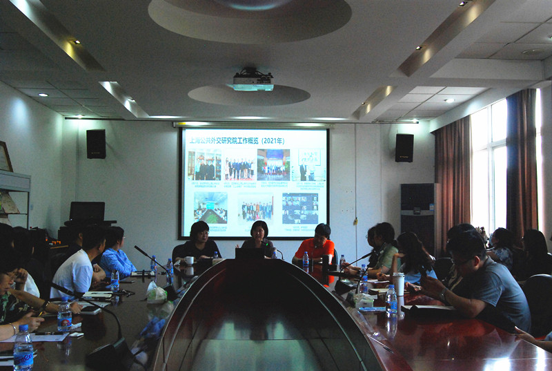 随后,刘芹回顾了研究院成立至今所开展的多项重要工作,包括应邀参加上海公共外交协会举办的第四期“江上会客厅”中外朋友恳谈会,学校党委书记、上海公共外交研究院院长吴坚勇带队赴复旦大学国际问题研究院和上海外国语大学上海全球治理与区域国别研究院调研交流,参与组织“了解中国,把握机遇”中德双语在线对话论坛等。最后,刘芹就2021年下半年翻译《公共外交译丛》、筹建上海公共外交研究院微信公众号等重点工作进行了安排。