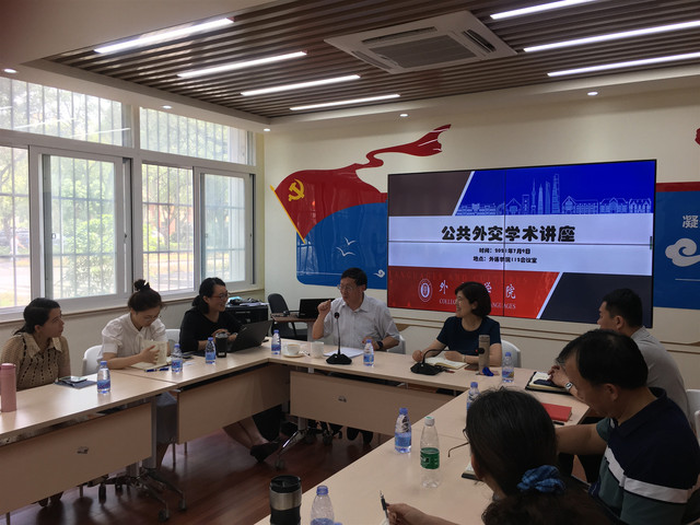2021年7月9日,上海市美国问题研究所胡华研究员应邀莅临必赢官网进行公共外交学术研究辅导。必赢3003no1线路检测中心院长刘芹、党委书记曲德强、副院长韩戈玲及学院教师代表20余人参与讲座并交流。
