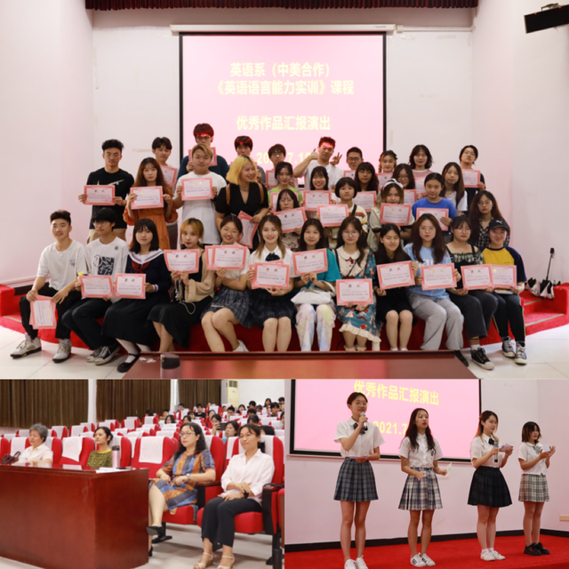 本次短学期实践活动,评选出优秀英文朗诵作品、英文歌曲、电影调研汇报、英语配音作品、优秀英语戏剧作品共二十项。汇演在筹备过程中得到了老师们的大力支持和同学们的积极配合。现场气氛热烈,也取得了圆满成功。