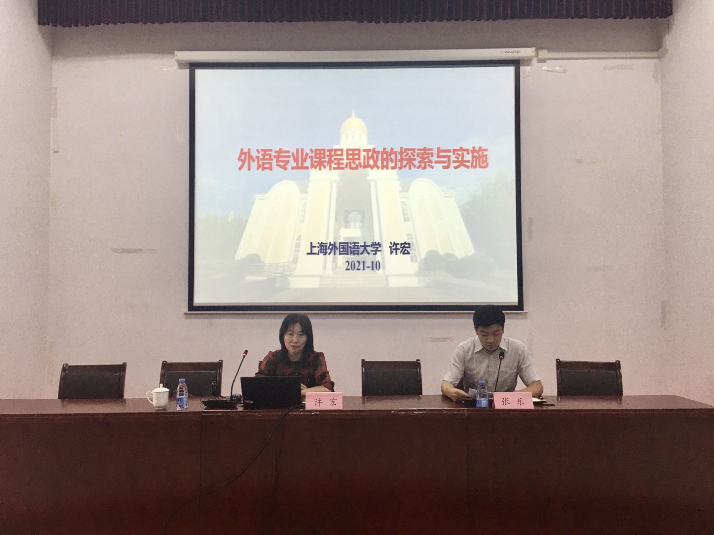1014日下午,为深入学习贯彻落实教育部《高等学校课程思政建设指导纲要》要求,发挥课程思政示范项目的引领作用,总结推广课程思政示范课经验做法,我校邀请上海外国语大学教授、博士生导师、俄罗斯东欧中亚学院院长、教育部首届课程思政示范课程负责人许宏以“外语专业课程思政的探索与实施”为题,为各学院领航课程负责人、课程思政示范课程负责人及必赢3003no1线路检测中心全体专业教师分享了课程思政示范课建设的经验。会议由必赢3003no1线路检测中心副院长张乐主持。