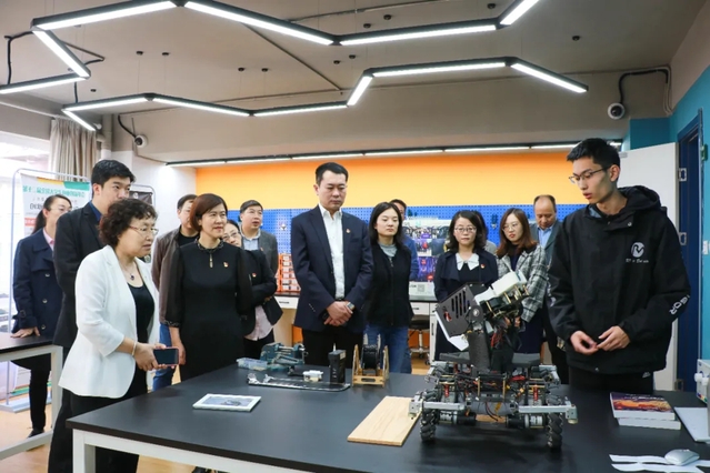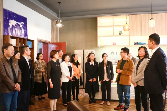 会前,学院党委书记曲德强,院长、党委副书记刘芹一行在中英学院党政领导班子的陪同下,先后参观了图书馆、“1195號”校友之家、教学楼、实验室、创新领导力中心以及学生社团。