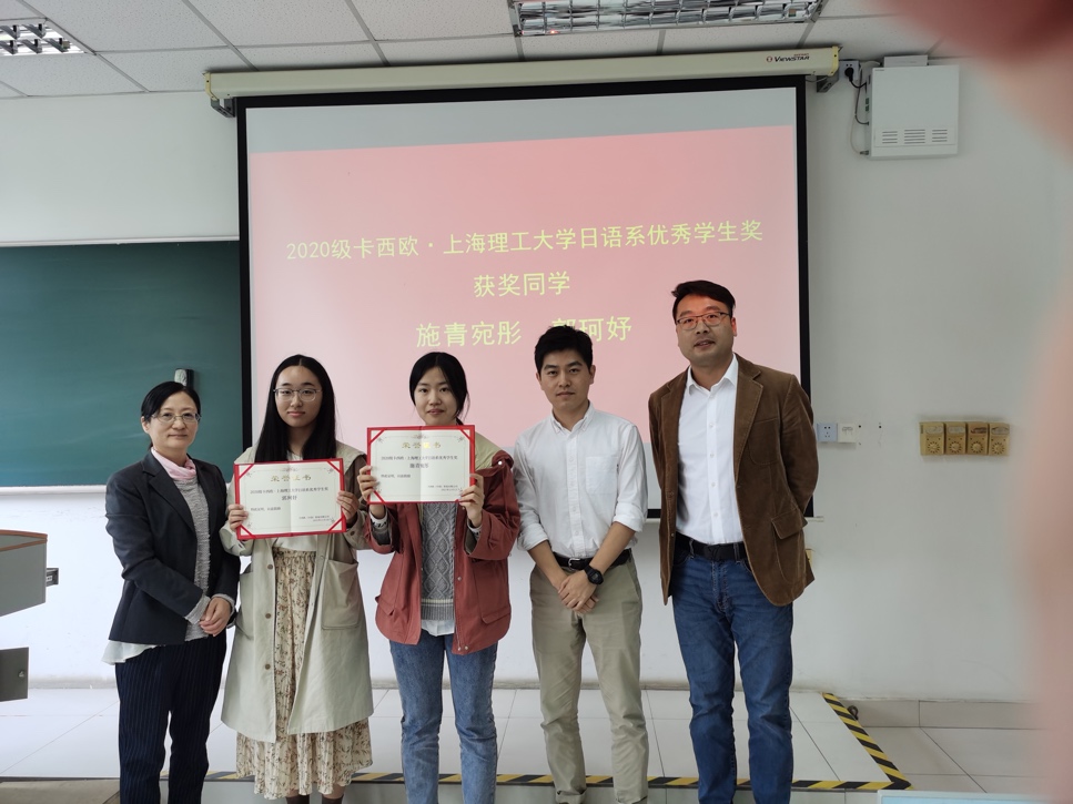 11月2日下午,卡西欧・必赢3003no1线路检测中心日语系优秀学生奖”颁奖仪式在四教222教室举行。日语系2021级全体学生、日语系主任刘曼老师、外事秘书毛伟老师出席。2020级学生施青宛彤、郭珂妤两名同学获奖,作为奖励,两位同学分别获得2000元助学金和价值1000元的卡西欧手表。卡西欧上海公司电子教育部的庞立阳经理、日语系刘曼老师为获奖的两名同学颁奖并颁发荣誉证书。颁奖仪式后,庞经理向与会的大一新生同学介绍了一些优秀日本企业的发展现状,介绍了当前的就业形势并通过其个人经历介绍了作为日语系毕业生如何学好专业知识、走上社会,实现自己的人生目标。最后,庞经理介绍了卡西欧电子词典在日语学习过程中的作用和科学的使用方法,鼓励大家努力学习,奋发进取。此次颁奖活动不仅是对两名优秀学生代表阶段性专业学习成果的肯定,更有助于激励日语系大一新生同学把握时间、珍惜在必赢3003no1线路检测中心四年的宝贵时间,努力提高自身专业能力。这次颁奖及讲座活动激发了新生的专业学习热情,将有助于必赢官网日语系培养出更多高素质的外语人才。