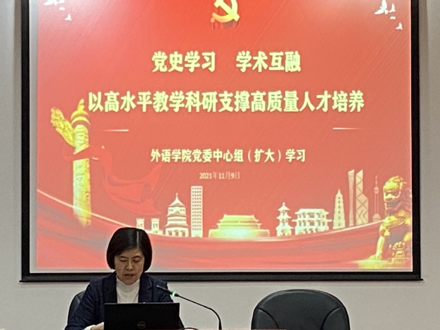 副书记金小东、副院长张乐、支部书记代表刘曼、党员教师代表王婀娜、王颖琴、缪蓬以及党员学生代表杜致强等分别做了交流发言。学院在学生党支部活动中开展英文版习近平谈治国理政学习、党章翻译、双语党章知识竞赛等活动,推动党建和学术的互融,提升学生的专业水平和综合素质。学院将全面推进课程思政2.0建设,带领全校的理工科学生,把外语学习、专业学习和党史学习融会贯通,继续完善理工特色大学英语教学体系,努力培养新时代、国际化的卓越工程师。教师代表们表示将充分发挥党员的示范带头作用,把党史学习教育与日常教学科研工作进行有机融合,推动党史学习教育走深走实。