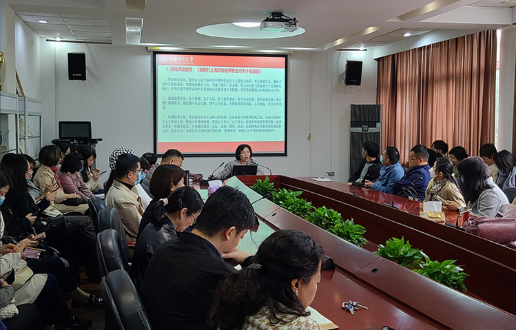 会上,韩戈玲副院长再次强调师德师风教育,带领与会教师学习教育部颁发的《新时代高校教师职业行为十项准则》和上海市教委发布的《新时代上海高校教师职业行为十项准则》,共同研读十条准则内容:坚定政治方向、自觉爱国守法、传播优秀文化、潜心教书育人、关心爱护学生、坚持言行雅正、遵守学术规范、秉持公平诚信、坚守廉洁自律、积极奉献社会。她希望广大教师自觉对照《准则》,明确新时代高校教师的职业行为规范,严格自我约束,加强自我修养,成为新时代师德师风的践行者和社会优良新风尚的引领者。