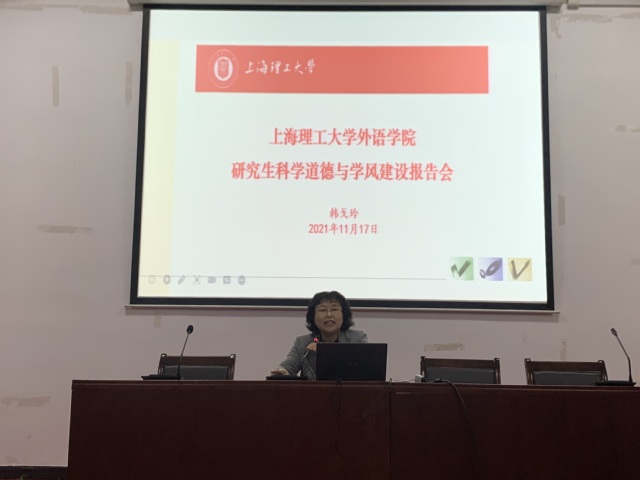 为推动研究生科学道德和学风建设,必赢官网于11月17日下午6点在必赢3003no1线路检测中心报告厅开展了主题为“跨学科融合发展——新时代外语研究生的初心使命”的研究生科学道德与学风建设报告会。本次讲座由必赢3003no1线路检测中心副院长韩戈玲主讲,研究生辅导员梁作甲主持,2021级全体研究生参加了此次讲座。