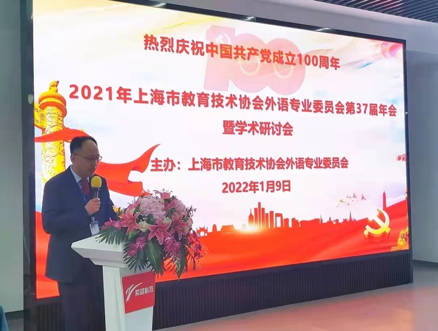随后,上海市教育技术协会外语专业委员会会长陈坚林教授作《2021年上海市教育技术协会外语专业委员会工作报告》。报告回顾了2021年协会的主要工作,指出协会在党的教育方针指引下,宣传和推广外语教育与教学经验,加强校际协作,开展多项学术研究工作,举办了优秀论文、优秀课件征集活动。陈会长指出,今年时值建党100周年,协会坚持以习近平新时代中国特色社会主义思想为指导,结合党史教育,不忘初心、牢记使命,持续推进外语信息化现代教育的工作,不断开创“产学研”互利共赢的新局面。
