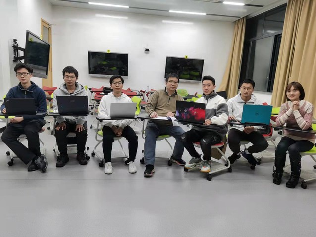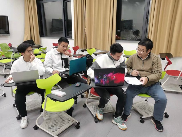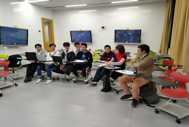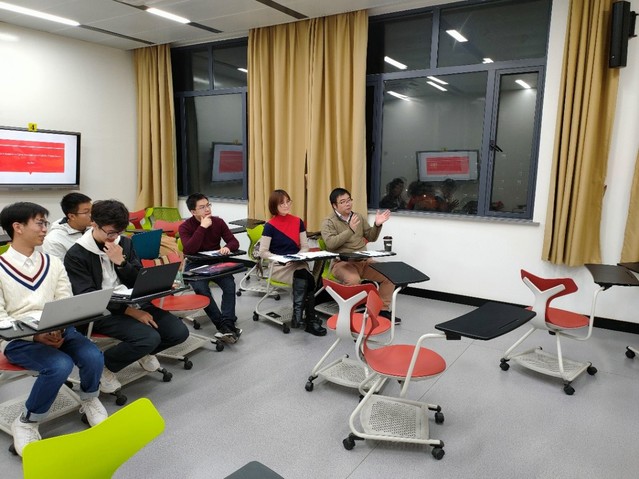 詹其文教授(右一)点评学生期末论文汇报