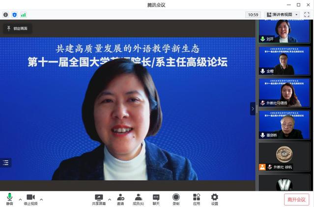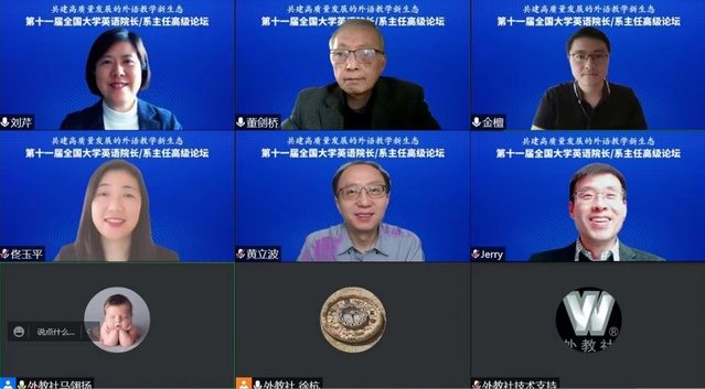 2022年4月9-10日,第十一届全国大学英语院长/系主任高级论坛在线上召开,主题为“共建高质量发展的外语教学新生态”。会议由教育部高等学校大学外语教学指导委员会、云南大学、上海外国语大学主办,上海外语教育出版社承办。论坛以服务国家发展战略、引领大学英语教学改革和助力复合型国际化人才培养为目标,着力打造分享外语教学经验、探索外语教改路径、生发外语教育思想的汇智创新场景。