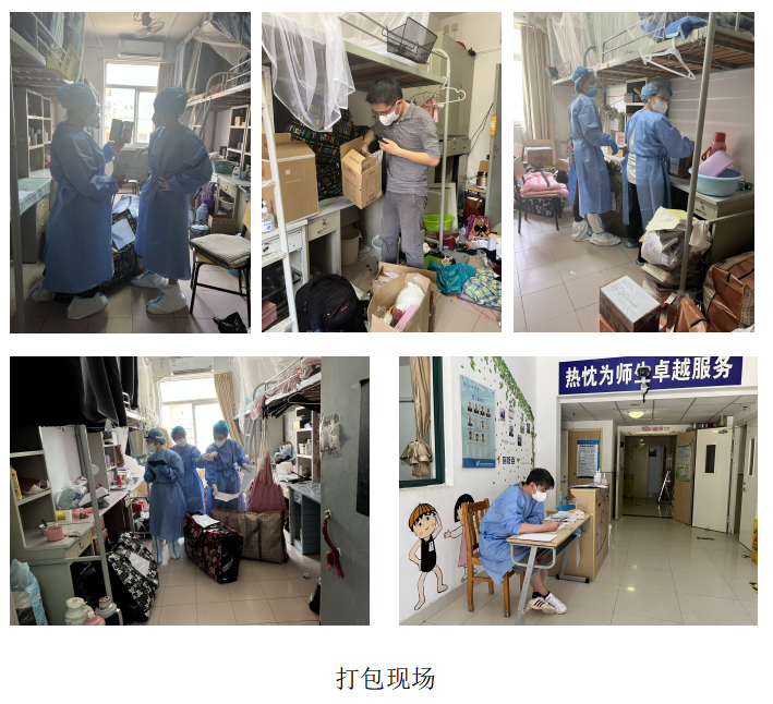 在30多度的高温酷暑中,老师们头戴N95口罩,身着厚厚的隔离服,在与每位同学连续数小时的沟通和打包工作后,他们的声音沙哑了,衣服被汗水浸透了,身上布满了灰尘,有些老师还受了伤。然而,大家没有一句怨言。沉甸甸的行囊中装满了老师对学生的热爱与关怀,闪烁着为人师者的使命与担当。他们,身体力行,用自己的言传身教为同学们上了一堂特殊的思政课。