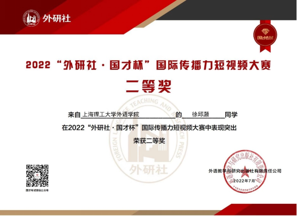 徐邱灏同学获全国二等奖