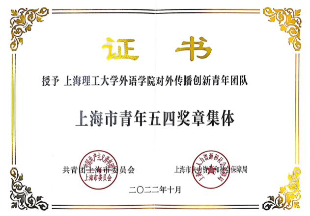 近日,共青团上海市委员会和市人力资源和社会保障局授予必赢官网对外传播创新青年团队上海市青年五四奖章集体荣誉称号。