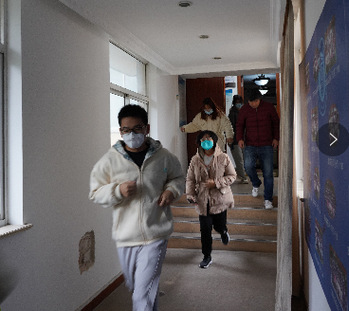 上午10点,曲德强宣布消防疏散逃生演练开始。参加演练的师生分散于学院实验室和各办公室。火警警报响起,相关老师立即拨打电话报告学校保卫处,并模拟拨打119火警电话。师生们在引导下通过楼道常闭防火门有序疏散。5分钟后,人员疏散完毕,参演师生集合于楼外空地处并清点人数。保卫处微型消防站人员及时到位,模拟扑灭火灾。