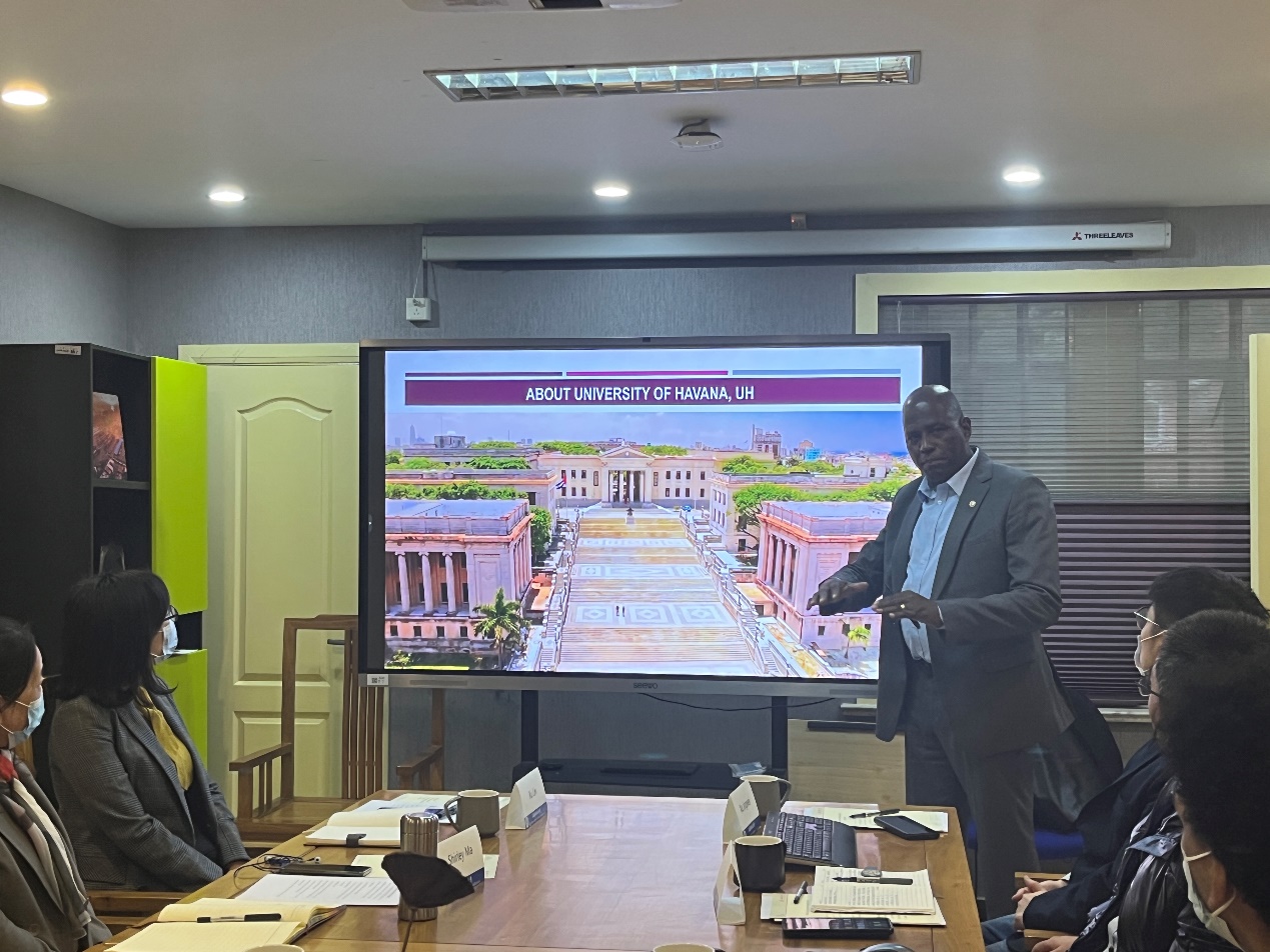 席尔瓦对我校领导致以诚挚问候和感谢。他着重介绍了哈瓦那大学语言专业和人文学科的发展情况,并表示高度重视与我校的合作关系,希望通过此次访问进一步落实两校相关合作。