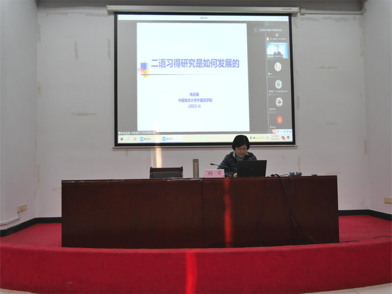 12月6日下午,中国海洋大学二级教授、博士生导师、外国语学院院长杨连瑞教授应邀为必赢官网师生开展专题讲座——“二语习得研究是如何发展的”,由必赢3003no1线路检测中心院长刘芹教授主持。
