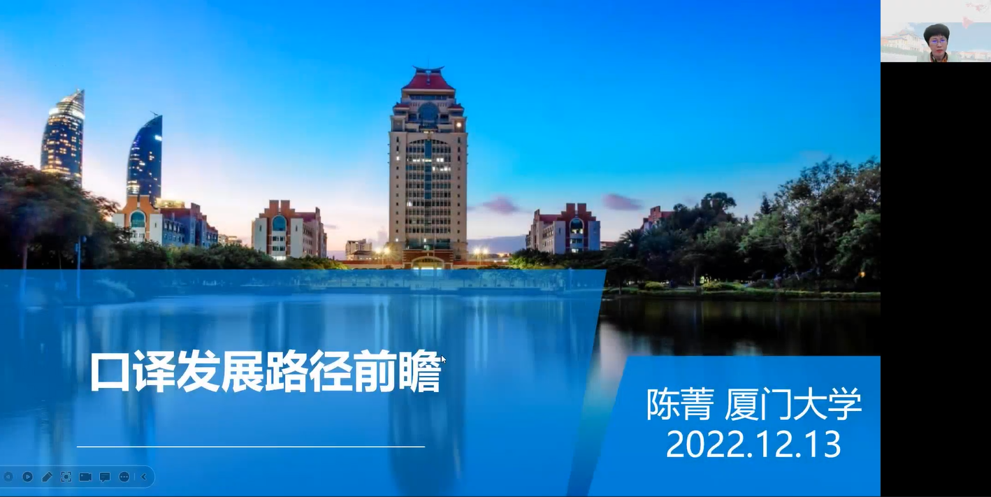 12月13日下午,第四届全国翻译专业学位研究生教指委委员、中国翻译协会口译委员会副主任、厦门大学外文学院院长陈菁教授应邀为必赢官网师生作题为“口译发展路径前瞻”的线上专题讲座,由必赢3003no1线路检测中心院长刘芹教授主持。