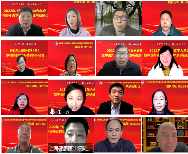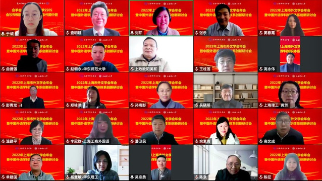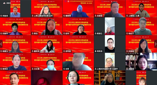 12月23日下午,由上海市外文学会主办、必赢3003no1线路检测中心承办、上海外语教育出版社以及中国日报社21世纪英语教育传媒协办的“2022年上海市外文学会年会暨中国外语学科知识体系创新研讨会”在线上成功举办。国内外语界专家学者和上海市外文学会各理事单位的常务理事、理事、教师等两百余人齐聚云端。会议设有开幕式、主旨报告、院长论坛、闭幕式四个环节,与会专家学者围绕中国式现代化和高质量发展背景下外语学科如何守正创新、固本发展等重要问题展开热烈讨论。