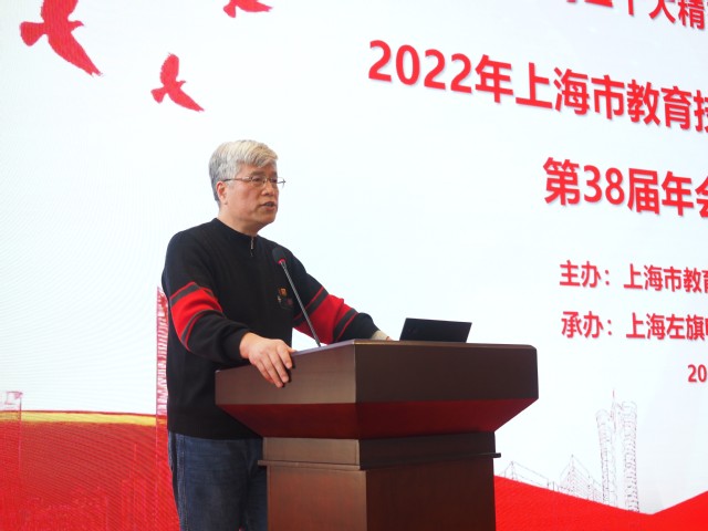 上海市教育技术协会外语专业委员会会长陈坚林教授做工作报告