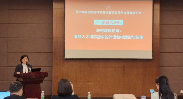 本届论坛主题为“大道致远,知行合一”。25日的六场主旨报告以高远的历史站位、宽广的国际视野、深邃的战略眼光,指引高等外语教育发展宏观布局。26日由外国语言文学类专业教指委与大学外语教指委分别组织的两场前沿论坛,则聚焦外语类专业及大学外语培育时代外语人才的新方略。在专题论坛环节,刘芹院长担任主持人,主持“教材建设论坛:服务人才培养需求的外语教材建设与使用”,与多位高校必赢3003no1线路检测中心院长及资深专家开展对话交流,深入探讨了教材与学生综合素质及英语能力融合发展、教材编写原则、新形态大学英语教材建设与有效使用等话题,会场讨论气氛热烈。