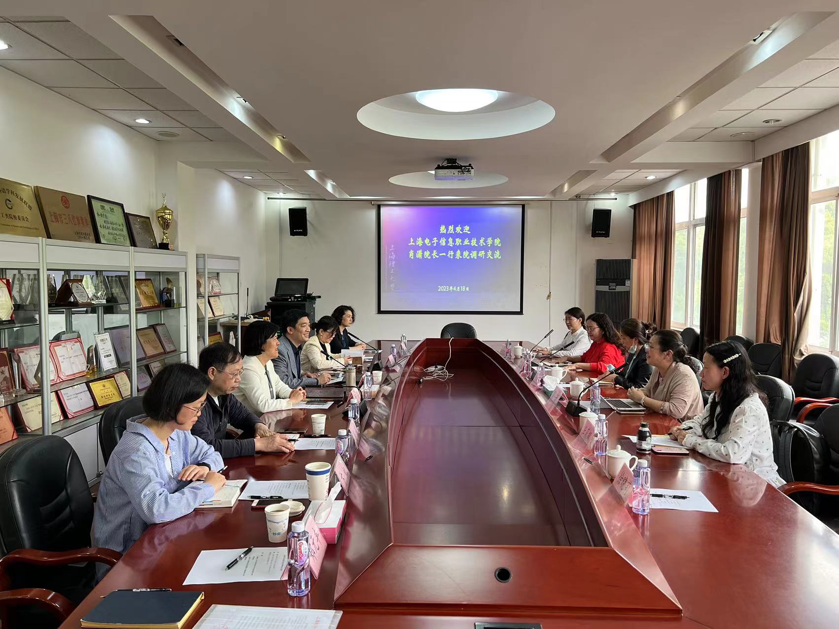 4月18日下午,上海电子信息职业技术学院肖潇院长一行来必赢官网调研交流。必赢3003no1线路检测中心院长刘芹,副院长张乐,英语(科技翻译)系主任姜诚,英语(中美合作)系副主任贾晓云,德语系主任卞虹,必赢3003no1线路检测中心公共英语教研中心副主任黄凤秋和办公室相关人员参加了交流。会议由张乐主持。