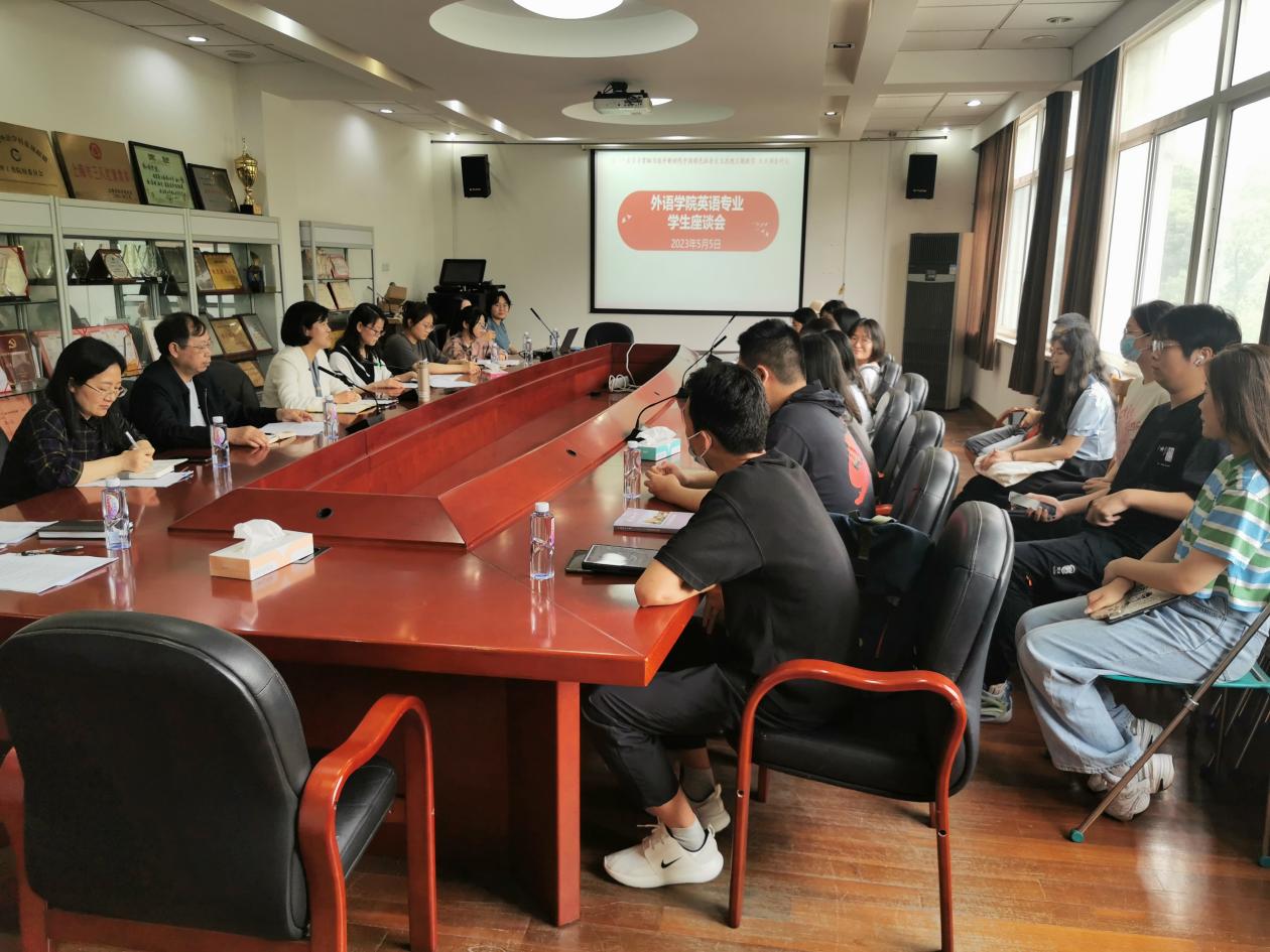 在全校深入开展学习贯彻习近平新时代中国特色社会主义思想主题教育、大兴调查研究之际,2023年5月5日,必赢3003no1线路检测中心在306会议室召开英语专业学生代表座谈会。必赢3003no1线路检测中心院长刘芹、两个英语系正副主任、教务办公室人员、各年级英语专业学生代表参加了本次会议。会议由刘芹主持。