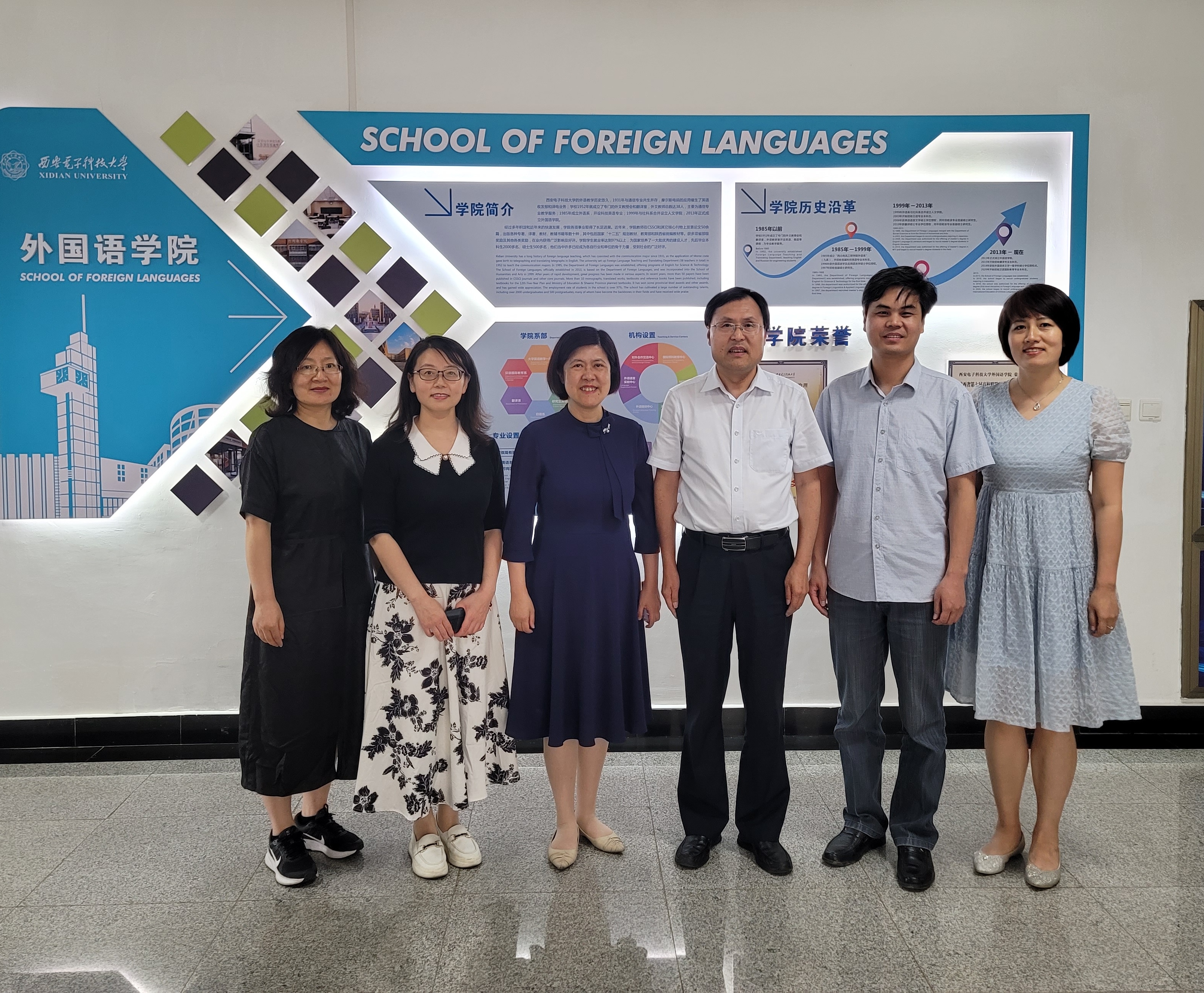 当天下午,刘芹一行来到西安电子科技大学外国语学院进行调研座谈。西安电子科技大学外国语学院院长马刚、英语系主任任伟平和MTI教育中心主任周正履参加了座谈。座谈会上,刘芹和马刚分别对本学院学科建设、师资队伍、研究生培养等基本情况作了介绍。随后大家围绕本硕培养方案、课程思政等问题展开深入交流,双方希望能以此为契机,进一步加强两院交流合作,互相取长补短,并在以新文科建设带动两院高质量发展方面达成共识。