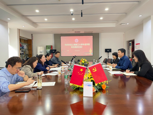 电子科技大学外国语学院党委书记文学、外语部主任刘淑珍、公研主任李京南等老师详细介绍了学校和外国语学院的办学历程和学术特色,特别是大学英语改革、一流课程建设、课程思政、混合式教学、分级考试、形成性评估、教师发展、外语实验室、教材编写、学科竞赛、研究生公共英语教学等方面的成果和经验,为我校公共英语课程建设提供了有益借鉴。张乐副院长也介绍了我校公共英语课程改革等各方面的情况。之后,双方就具体问题展开了热烈的探讨。
