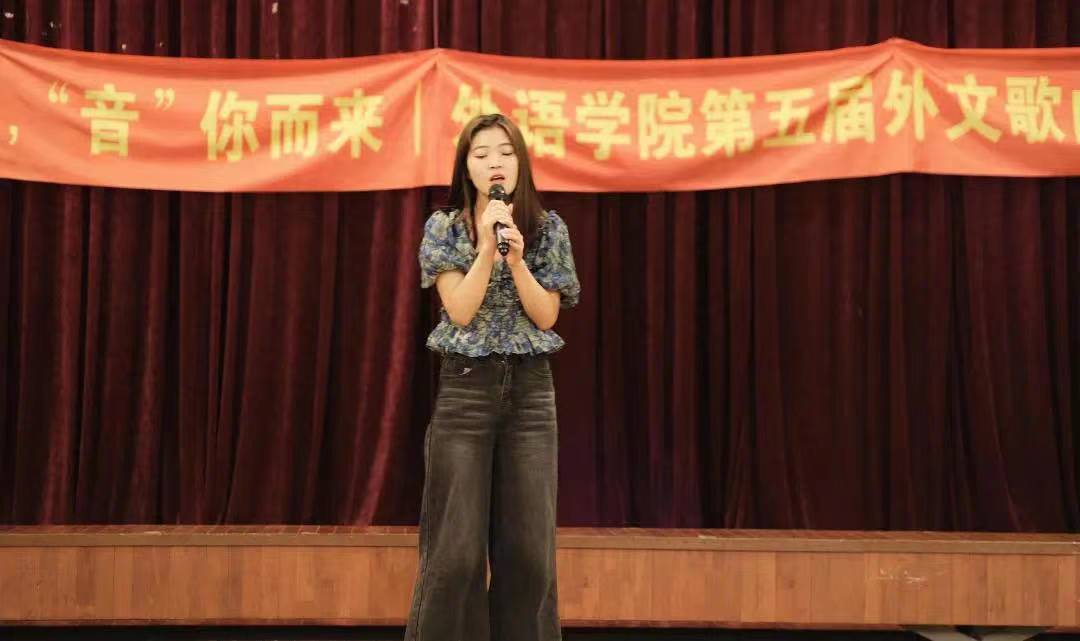 游戏环节后下半场的比赛随即开示。首先5号选手杨紫叶出场,一首《Because of You》唱出了爱情的细腻,全场大合唱仿佛是生活中爱情的芬芳。而后6号选手魏梦丹的韩文歌曲《기억을걷는시간(游走记忆的时间)》用独特的旋律和韩语情感,深深触动了每个观众的心弦。7号选手王岚淇的歌声如春水般清澈,一首《Gotta Have You》融进了自己最真挚感人的情感。最后,8号选手吴雨婷的《Older》清澈动人,以动人旋律点燃了本场比赛最后的激情,为第五届外文歌曲大赛划下圆满句号。
