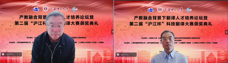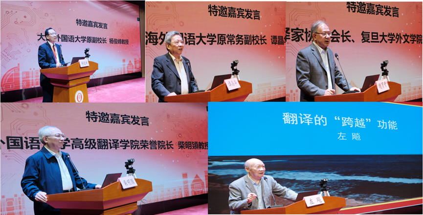 接着,本次大赛组委会主任、大连外国语大学原副校长杨俊峰,上海外国语大学原常务副校长谭晶华,上海翻译家协会会长、复旦大学外文学院魏育青,上海外国语大学高级翻译学院荣誉院长柴明熲和上海海事大学外国语学院原院长、上海市科技翻译学会原会长左飚5位教授分别致辞。杨俊峰教授强调科技翻译在全球化背景下的重要性,科技翻译人才培养对于推动科技创新、促进跨文化、跨国际的合作以及增强国际交流的重要作用,提出要加大对高端翻译人才领域的培养力度,以满足科技发展对外语服务的需求。谭晶华教授向获奖同学表示热烈祝贺,对高端翻译人才培养以及如何提高翻译水平提出自己的看法,他指出,翻译水平的提升应建立在实践的基础上,并着重强调翻译的精准性。魏育青教授回溯了我校戴鸣钟、卢思源和戴炜华教授为科技翻译发展做出的重大贡献,探讨科技翻译与人文社科翻译的互补关系及机器翻译与人工翻译的关系。柴明熲教授在发言中畅谈心中感想,指出要发挥翻译促进国际交流的媒介作用,要培养能解决翻译过程中疑难杂症的高端翻译人才。左飚教授围绕翻译的“跨越”功能,分享生动的翻译实例与自身经验,展示了翻译作为中介的工具性、应用性以及服务性,强调翻译具有跨语言交际、跨文化交流、跨学科研究、跨专业教学、跨行业服务以及跨时空连接的“跨越”功能。